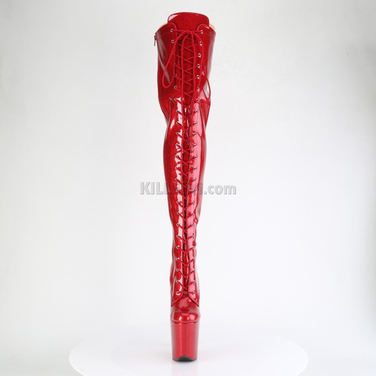Ботфорти червоні з глітерного лаку з передньою шнурівкою