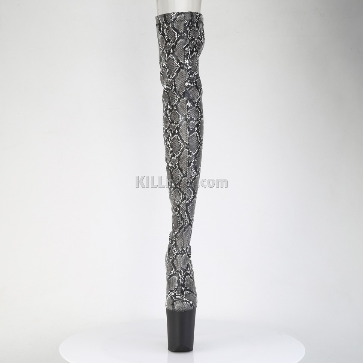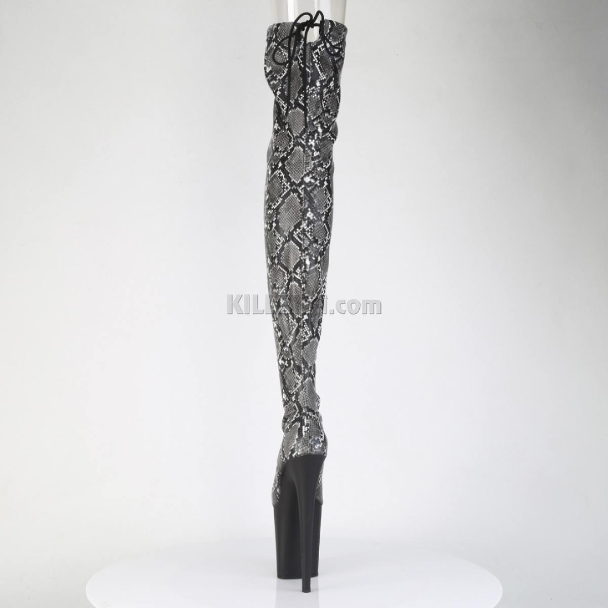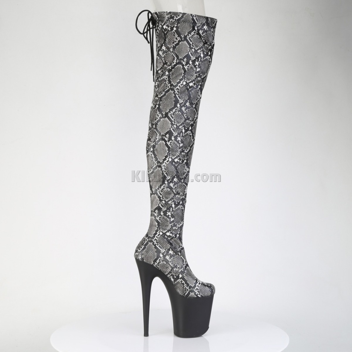 Ботфорти Pleaser із зміїним принтом та шнуровкою позаду