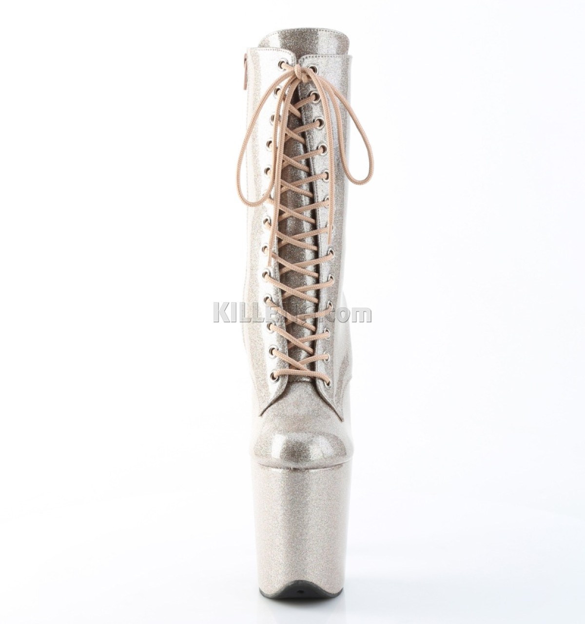 Стрип-черевики з блискучого срібного лаку